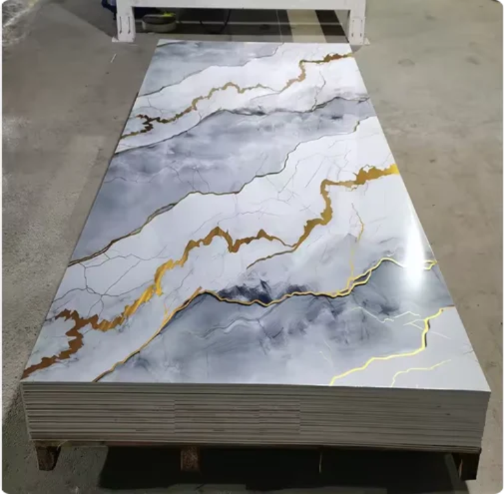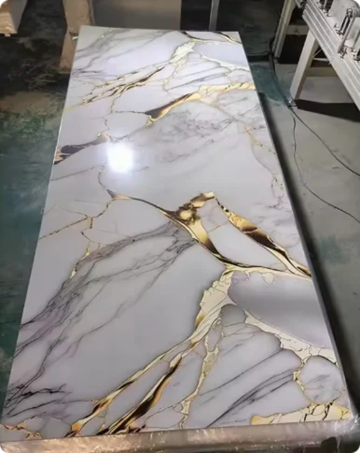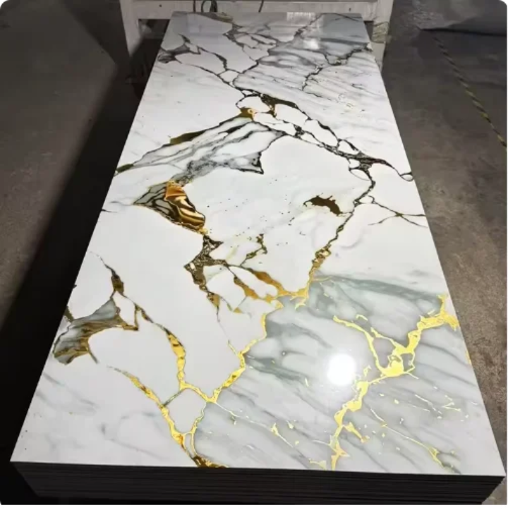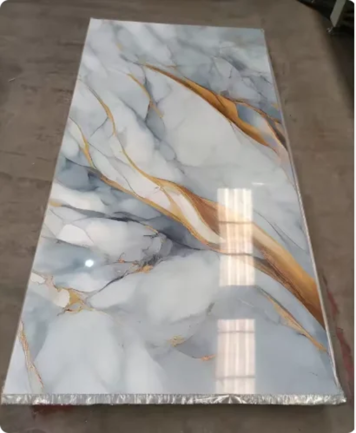These sheets are widely used for TV feature walls, living room accent walls, bedroom headboards, office partitions, reception backdrops, hotel interiors, restaurants, showrooms, retail spaces, and ceiling applications. Their polished marble finish adds a luxurious, timeless appeal without the high cost and maintenance of real stone.